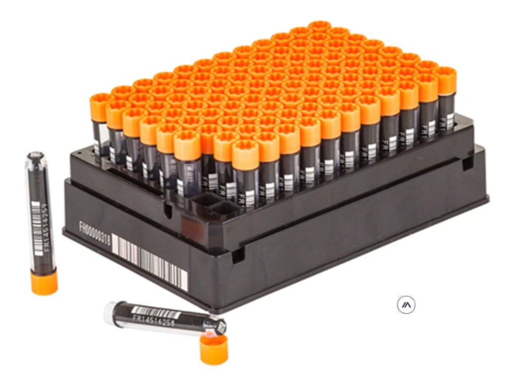 - permanently laser etched 2D code on base, 1D linear barcode and human readable number on the side, ensuring a permanent link between sample and data