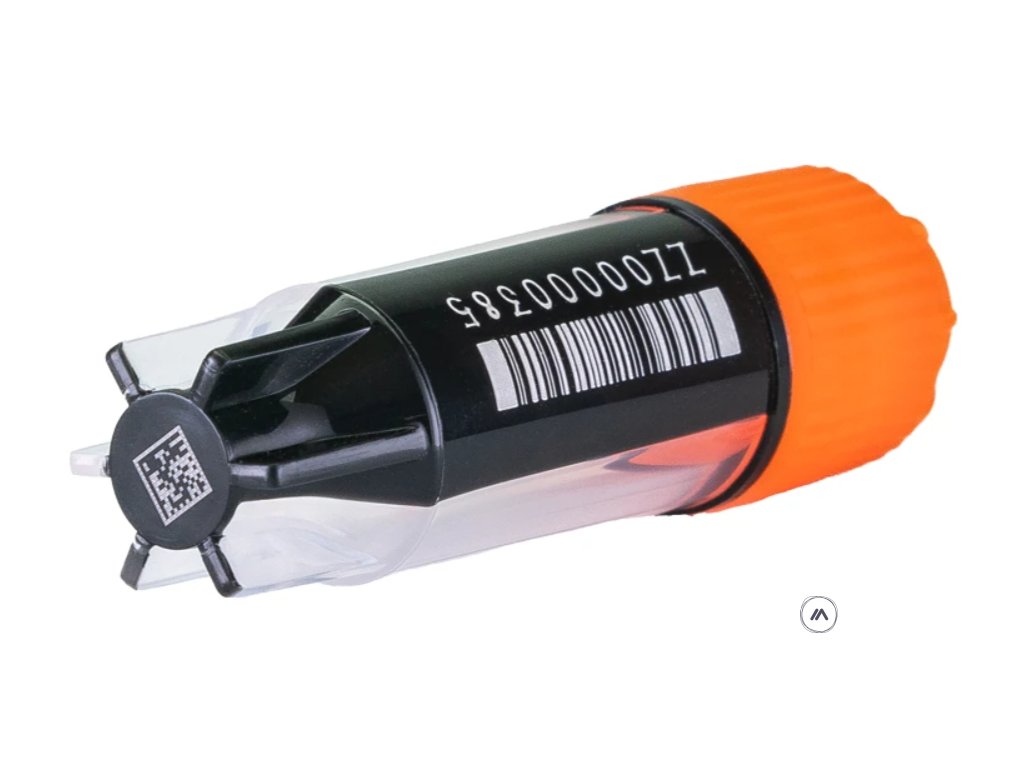 - permanently laser etched 2D code on base, 1D linear barcode and human readable number on the side, ensuring a permanent link between sample and data
